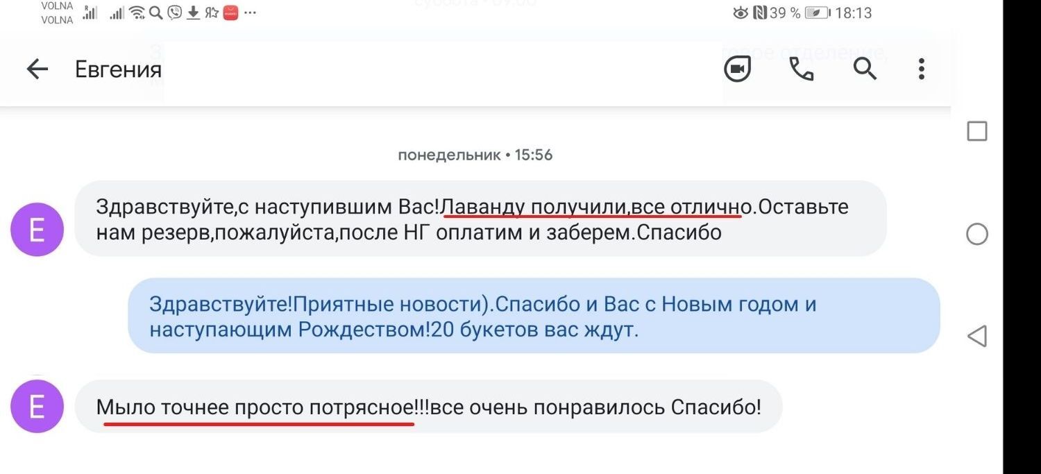 Лаванда из Крыма! Всем поклонникам натуральных, ароматных, сиреневых цветочков очень советую. Заказывала цветы, масло обалденное и от мыла с люфой осталась в восторге. Аромат лаванды спасибо за чуда!